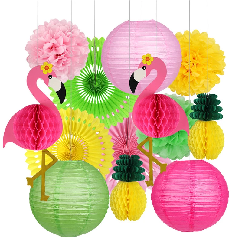 Tropical Pink Flamingo Party Decorations Supplies Pineapple Honeycomb Pom Poms Flowers Paper Lanterns For Summer Birthday Party Party Diy Decorations Aliexpress